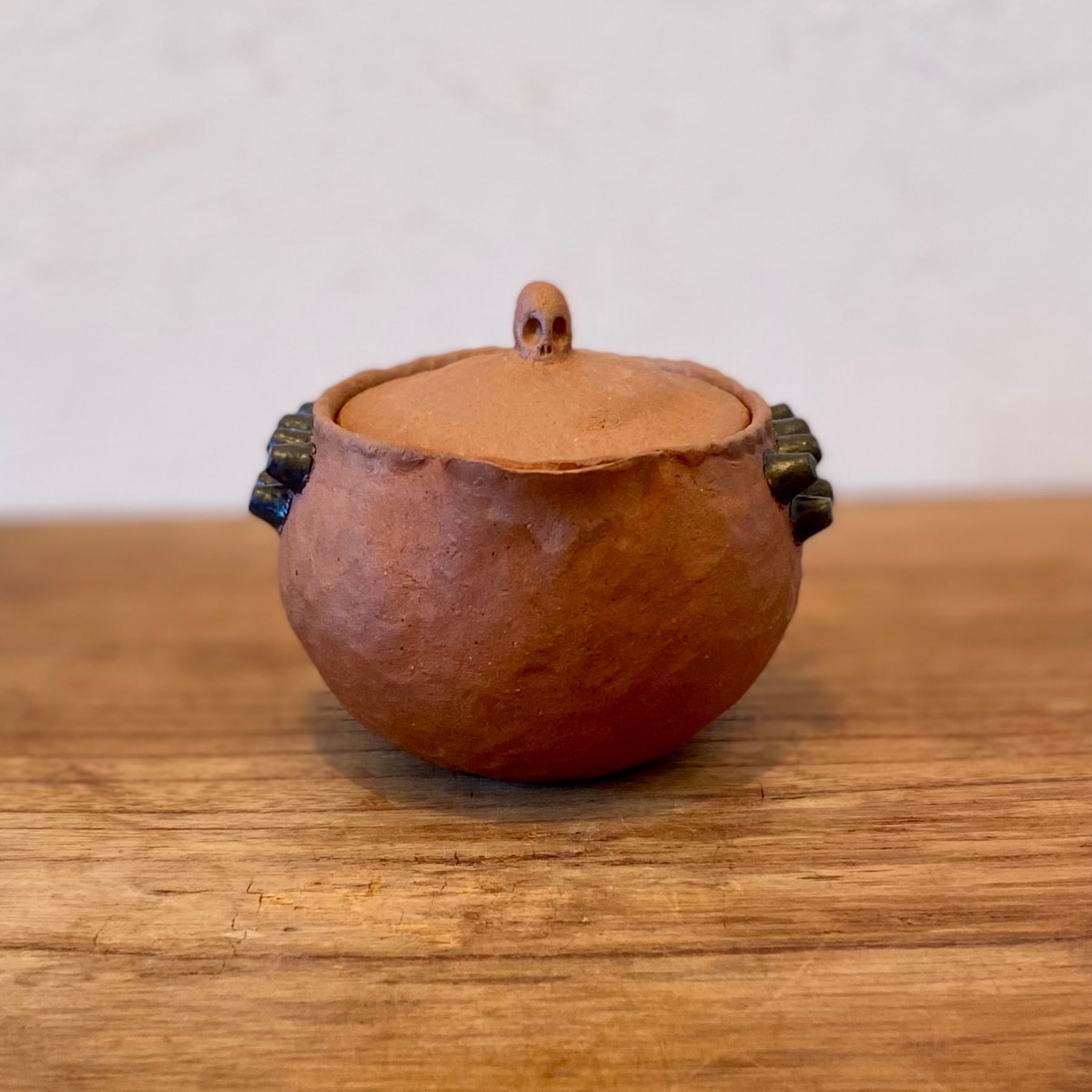 蓋のつまみは前から見るとドクロ後ろから見ると普通のつまみに見えます。